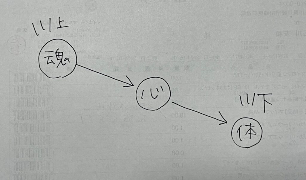私が所属していた宗教は、「魂を川上。その下に心、体があり川下」と言っていました。